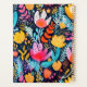 Personalice este capricho con su nombre en cursiva azul oscuro enmarcada por un rectángulo blanco, sobre un audaz y colorido patrón de fondo de elementos florales y botánicos pintados a mano en tonos turquesa, rosa y amarillo.