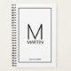 El diseño minimalista moderno presenta un monograma personalizado y un nombre con un estilo de fuente sans serif moderno negro sobre fondo blanco.