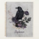 Set the tone for a mysterious and organized year with this personalized daily planner. This moody design features a striking black raven perched among deep purple roses and botanical elements, all rendered in a smoky gray stone-textured palette. It is the perfect way to elevate a workspace or a thoughtful gift for a writer or stationery lover.