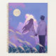 A minimalist pastel style illustration depicting two characters standing side by side, holding hands and gazing at the full moon in the sky. One person wears a soft long cloak, the other wears a coat and pants, both drawn with gentle color tones. In the foreground, there is tall grass, and in the background, pink and purple clouds illuminated by moonlight. The atmosphere is peaceful, evoking a sense of companionship, tranquility, and the beauty of nature under the moonlight.