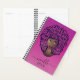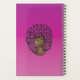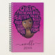 Este diseño presenta "Reina, fenomenal, bella, inteligente, mágica, jefa, amorosa, sexy, independiente, divertida, creativa y fuerte" anidada en su afro, con collares de capas en un fondo magenta.