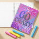 This spiral planner bursts with bold overlapping circles in pink, purple, blue, and peach. All hand drawn, the cover has a playful phrase “GO CRAZY” in multicolored letters, paired with a customizable name at the top and year at the bottom. It’s a vibrant, energetic design that inspires creativity and freedom of expression. Perfect for school, work, or personal journaling, this planner adds a splash of personality to everyday organization.