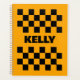Manténgase organizado con este audaz naranja y planificador negro de patrones a cuadros. Perfecto para la planificación diaria, las notas y el mantenimiento de la pista.