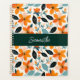 flores naranjas, planner personalizado floral azul y verde oscuro follaje floral.