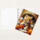Planificador personalizado. El gatito a rayas naranja dulce jugando en una canasta de bolas de hilo naranja y blanco.