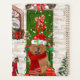 Chow Chow Dog sentado afuera de la casa decorada con corona de Navidades, el árbol de Navidad es un perfecto regalo de Navidades para los amantes del perro.