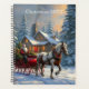 Santa conduciendo un trineo de un caballo para entregar regalos de Navidad en un pequeño pueblo