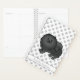 El original ilustracion personalizado de Destei de un lindo perro de raza negra de color pomerania. También hay un área de texto personalizable para un nombre o título. El fondo tiene un patrón de huellas de perros.