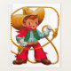 Un lindo estilo retro de los años 50, este pequeño vaquero occidental está jugando con su lazo de cuerda. Un tema occidental para los niños. Lleva puesto un gorra vaquero, un lindo traje occidental, y se prepara para arruinar una vaca.