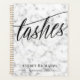 Planner de espiral de moda o libro de citas para un artista excéntrico con latigazos escritos en un guión negro sobre un fondo de mármol en blanco y gris. Añade tu nombre en elegantes letras negras.