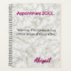 Aumenta tu planificación diaria con elegancia intemporal. Nuestro planificador de citas de mármol blanco de nombre personalizado presenta un lujoso diseño de mármol blanco acentuado por una brillante vetación de oro, una perfecta combinación de sofisticación y estilo. Con su nombre personalizado impreso en la portada, no es solamente un planificador — es un extracto.