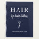Planificador de la libreta de citas azul marino con un par de tijeras blancas, fuentes elegantes y tu nombre en un guión encantador.