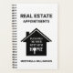 Moderno planificador de citas de REALTOR negro con PERSONALIZABLE TEXTO, diseñado para mantener el registro de todas las reuniones de citas que organizará desde sus muchas referencias. TEXT IS PERSONALIZABLE para que pueda personalizar la redacción de acuerdo con sus preferencias. El texto dice "BIENES INMOBILIARIOS y NOMBRAMIENTOS". El texto dentro de la casa negra dice BENDICIONES EN TU PRÓXIMA NUEVA CASA en tipografía blanca. La O de HOME se sustituye por una clave. Este planificador inmobiliario sería una gran adición a su negocio inmobiliario. Elija entre una amplia selección de diseños inmobiliarios para su negocio de solopreneur o agencia, diseñados en una gama de productos de Berean Designs.