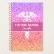 Enfermería Estudiante Caduceus Purpurina Arcoiris PlannerDiseñado con colorido fondo purpurina de arcoiris sobre el frente, la espalda y la columna vertebral con banda rosa en el centro. El frente tiene un gran símbolo de caducidad médico blanco. El texto es "Enfermera del futuro" en negrita con letras en bloques blancos y personalizado con el nombre en escritura con letras en blanco. ¡Hace de la universidad un gran planificador estudiantil de enfermería!