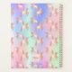 Un fondo de color iridiscente a la moda con tonos pastel unicornio en rosa, violeta y verde menta. Decorado con un patrón de unicornio de colores dorados. Personalice y añada un nombre y un año escrito con un guión de estilo florido a mano moderno. Letras de color púrpura.