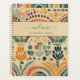 Este planificador bohemio presenta un nombre de escritura personalizado, y arcos de colores, flores y hojas.