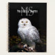Fotografía de retrato animal de majestuosa lechuza de nieve de pie en una rama con un nombre personalizado personalizable arriba.