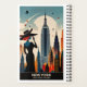 Experimente la emoción de "Nueva York: Tierra de Posibilidades Interminables" con este sorprendente planificador de viajes! Este cautivador planificador de viajes exhibe a una mujer con silueta en un gorra elegante, montada contra un horizonte retro-futurista lleno de rascacielos icónicos. Una gran luna y cuerpos celestes añaden un toque cósmico, realzando el encanto de la escena. Con el eslogan "Nueva York: Tierra de Posibilidades Interminables", esta obra captura maravillosamente la esencia de la aventura y la oportunidad que define al Estado Imperio, invitando a los soñadores a explorar sus horizontes ilimitados. Transforme sus sueños de viaje en realidad con este planificador temático.