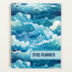 Olas oceánicas azules de bonito rodan y chocan por la parte delantera y trasera de la cubierta del planificador (frontal y posterior). Personalizar con el año.