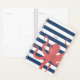 Este moderno y moderno acondicionador de estilo playero tiene un pulpo rojo con un fondo blanco de rayas azul marino. Puede personalizar este planificador con su inicial.