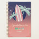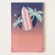 Toalla de playa tropical con palmeras, lámparas de cuerda y tabla de surf.