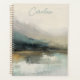 Un elegante planificador mensual sin fecha para el año. Un paisaje abstracto moderno con fondo neutro y verde azulado con un tipo de letra para personalizar con tu nombre y año.
