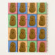 Divertido diario de estilo de arte pop colorido con un patrón de rectángulos de diferentes colores cada uno con una alegre papa marrón en el medio.