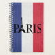 Ilustracion de diseño de texto de París con decoración de la Torre Eiffel sobre fondo de la bandera francesa gruesa