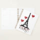 Este bonito diseño de la Torre Eiffel presenta la torre Eiffel en un edificio con una palabra gótica roja y gris "París" y globos flotantes de corazón rojo.