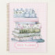 This design features a stack of pastel books on a pink and white gingham background. You can personalize with your name and year.