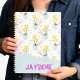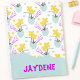 This spiral-bound notebook has hand-drawn pastel green vases and pastel yellow flowers with dots, and squiggles. The bottom has a place to customize with your name in bold magenta letters. It’s playful, personalized, and perfect for school, journaling, or gifting.