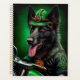 Un amigo peludo detrás de las manillares de una brillante bicicleta verde, usando un traje verde del Día del San Patricio que hace que las cabezas se vuelvan. El perro está vestido con un conjunto festivo, con una corbata verde de arco y un sombrero superior a juego que se sienta cómodos sobre su cabeza. El conjunto presenta un diseño intrincado de rocas de champú y leprechauns, lo que deja claro que este perro está listo para celebrar el Día de San Patricio con estilo.