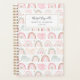 El pintoresco planificador del arcoíris para las mujeres presenta un ilustracion moderno de arcoiris con nubes y gotas de lluvia en colores pastel.