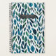 Patrón de hojas azules y verdes inspirado en las acuarelas. Personalice el nombre dentro del rectángulo gris en la parte delantera.
