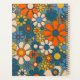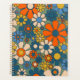 Flores de jardín retro Groovy Alegre Floral 60 Patrón 70 Mostaza Naranja Azul Verde Beige Planner. Diseño estético de flores nítidas, vívidas y vanguardistas con un ambiente de los años 1960. Por Kierkegaard Design Studio.