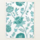 Diseño de gran superficie de estilo jacobino en contrastes de teales/óvulos de pato sobre fondo blanco.
