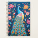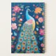 Este hermoso diseño presenta un resplandeciente pavo real en tonos azules, verdes y naranjas, que simbolizan la prosperidad y la belleza. Un magnífico planificador para organizar tu vida. Alrededor del pavo real hay flores de bonito de colores rosa y naranja. Diseñado en una estética de arte folclórico.