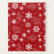 Ilustracion de texto de paz y alegría con copos de nieve blancos decoración sobre fondo rojo