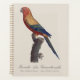 Esta ilustración presenta un macho de perico sol brillantemente coloreado, representado en un estilo clásico de historia natural que recuerda a las primeras obras ornitológicas. El ave se muestra posada en una rama texturizada, su postura tranquila pero alerta. Su plumaje irradia con tonos intensos: naranja ardiente en la cara y el pecho, que se fusiona con amarillo dorado a lo largo del cuerpo, y contrasta con las plumas de vuelo de color verde y azul profundo. La composición y el fino detalle reflejan la influencia de Jacques Barraband, cuyo trabajo en la documentación de aves exóticas combinó la precisión científica con la elegancia artística. La inscripción "Perruche Ara, Guarouba mâle" vincula aún más la imagen a las interpretaciones históricas europeas de los loros sudamericanos.