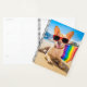 Esta linda foto muestra a un perro chihuahua en la playa llevando una bandera del Orgullo Gay de color arcoiris.