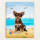 El perro lindo sentado en la playa es un regalo perfecto para alguien que ama esta raza de perro.