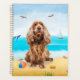 El perro lindo sentado en la playa es un regalo perfecto para alguien que ama esta raza de perro.
