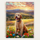 Perro Labradoodle en hermoso campo de flores al atardecer. Rompecabezas, rompecabezas en latas, planificadores, cuadernos con este diseño en mis tiendas. Agregar texto para personalizar.. Muchos diseños de mascotas y paisajes en mis tiendas. Agregar este diseño a otros productos. Agregar texto.