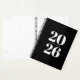 Moderno planificador de tipografía en blanco y negro con diseños semanales y mensuales. Ideal para equipos corporativos, regalos de clientes, kits de embarque o almacenamiento de información en conferencia a granel.