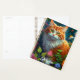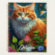 Un adorable gato naranja con ojos amarillos en flores bonitos y coloridas. Whimsical ai art. Añade tu nombre en el área de personalización.