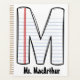 Stay organized in sporty style with this custom Physical Education teacher planner! Featuring a bold monogram initial designed to look like lined notebook paper, this planner blends classroom charm with gym-ready functionality. Personalize with your name and school for a one-of-a-kind look. Perfect for lesson planning, tracking student progress, and scheduling activities all year long. A thoughtful gift for PE teachers who love keeping things moving—and organized!