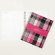 Modern 3 ring binder with a pink black tartan plaid design and a white scripted name. Personalize with your name on the cover and text on the spine.