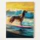 Sumérgete en el mundo lúdico de la aventura canina con esta pintura cautivadora. Un perro animado lleva a las olas, subiendo con habilidad al surf en una playa con sol. El vibrante arte captura bellamente la esencia de la emoción en la playa mientras el perro recorre sin miedo las olas, encarnando el espíritu de diversión y libertad. Con una armoniosa mezcla de colores y brochas dinámicas, esta pieza aporta la alegría del surf y de la playa a tu espacio, convirtiéndolo en una deliciosa adición a cualquier colección de arte.