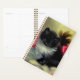 Un planificador con un gatito blanco y negro juguetón. Este esponjoso gato esmoquin posa entre flores rojas sobre una manta azul. ¡Un regalo magnífico para los amantes de los gatos y del arte victoriano!