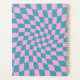 Una almohada de diseño a cuadros, perfectamente retorcida, en tonos pastel, llena de grandes vibraciones. Checkers modernos con deformación en color rosa azul. Este bonito diseño retro psicodélico te lleva a la maravillosa tierra. Los cheques retorcidos en colores pastel. Giro y remolque, torneado, patrón a cuadros